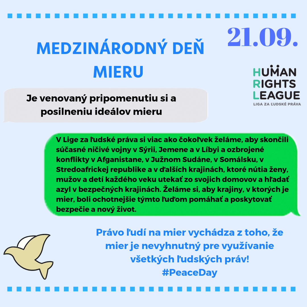 Nezabudnite tiež, že dnes je Medzinárodný deň mieru, ktorý si pripomíname aj my v Lige za ľudské práva: